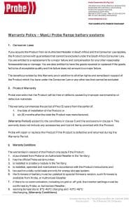 Company Documents Probe Company Profile Probe Credit Application Probe COD Application Alternator & Starter Warranty Battery Warranty Electrical Warranty Horton Warranty Inverter Warranty Maxli Warranty