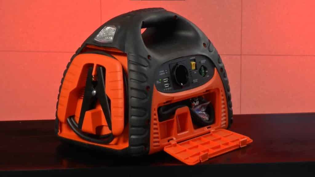 It offers 230V AC, 12V DC and 2 USB ports, a torch, a 400 Amp jumpstarter, and an 18Bar air compressor.