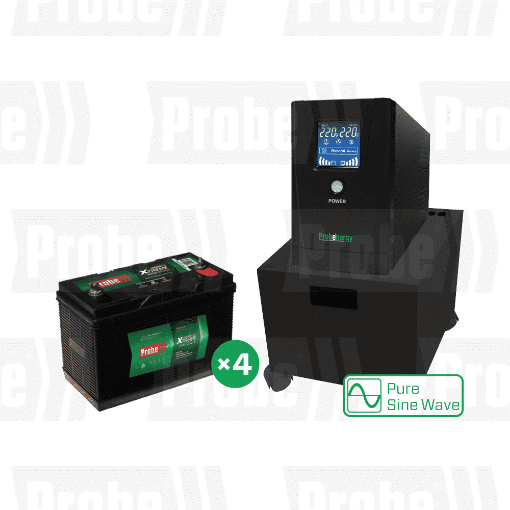 PE-KIT-5 (2000W 48V Pure Sine Ware inverter c/w 4 x 12V 100 Ah lead acid batteries and battery box)